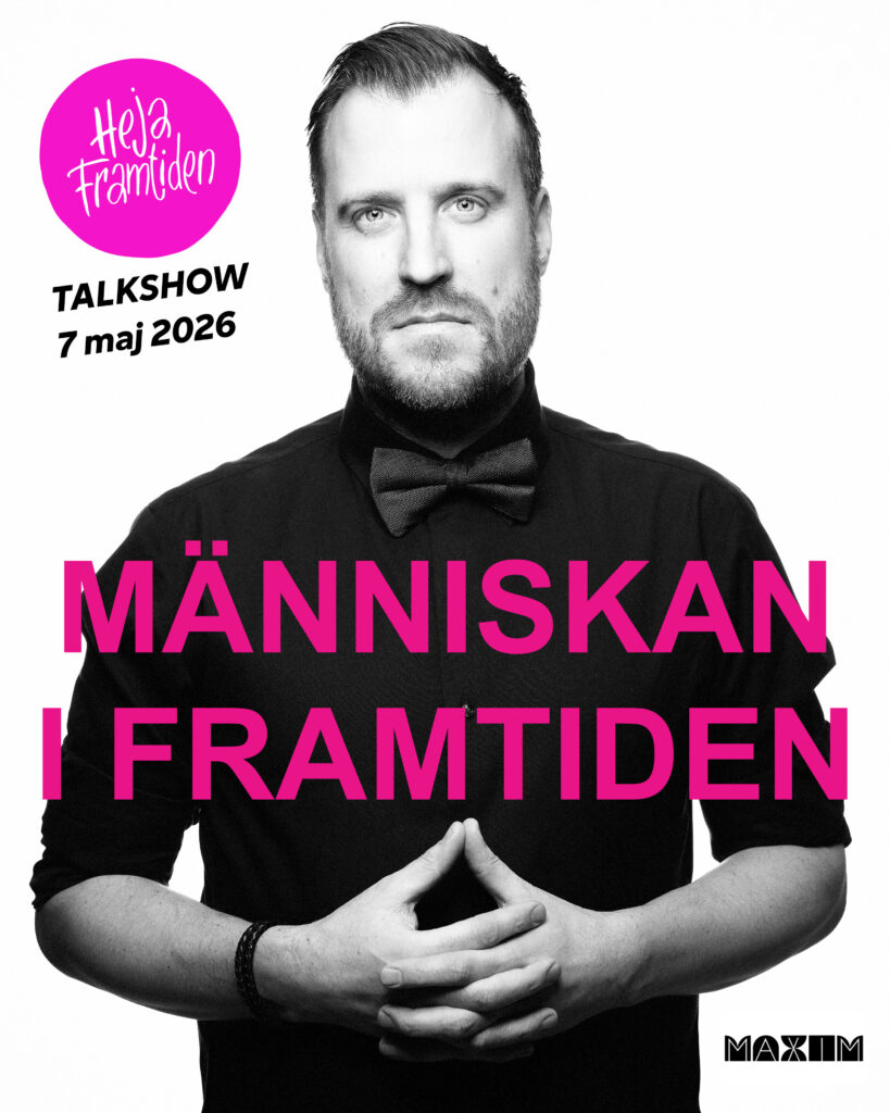Jag har bokat Maxim i Stockholm för en ordentlig Heja Framtiden-talkshow, torsdag den 7 maj 2026. Temat för kvällen är Människan i framtiden, och tillsammans med Dr Mouna, Niklas Laninge, Philip de Croy, Marika Smith och Arash Gilan kommer jag dyka ner ordentligt i det mänskliga – liv, död, pengar, sex, relationer, psykologi och filosofi.